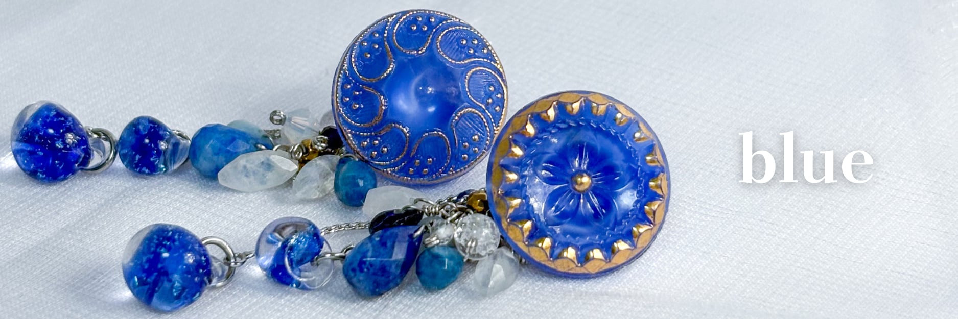 Spéjue "Celestia" - セレスティア - 〜清らかで神秘的な夜空と淡い雲〜 限定生産の特別なアクセサリー。 ヴィンテージガラスボタンとグレードの高い宝石質天然石を贅沢に使用しガラスビーズを組み合わせ、【数点のみ】丁寧に仕立てています。 同じデザインでも、それぞれに異なる表情があるため、どれも世界にひとつの組み合わせです。 再制作が難しいデザインのため、少数限定でのご用意となります。 【使用素材】 1950〜60年代西ドイツヴィンテージガラスボタン デュモルチェライトインクォーツ アフガナイト アイスクォーツ スカイブルートパーズ トパーズ ムーンストーン レインボームーンストーン ロイヤルブルームーンストーン カイヤナイト マザーオブパール ソーダライト アイオライト ラピスラズリ 水晶 ガラスビーズ ステンレスワイヤー ステンレス金具 ステンレスピアス・イヤリング金具 樹脂※ボタン裏加工 メッキ加工チェーン※肌に触れない部分 【ボタン裏側処理】 〜見えないところも美しく〜 ステンレス金具取り付け後、樹脂加工 【チャーム仕様】 ピアス・イヤリング共にマルチway ①Shara charm(様々な天然石) ②Bottom charm(丸玉天然石/ガラスビーズ) 引き輪金具を採用し取り外しができ、カスタム可能 ■ボトムチャームについての詳細 (詳しくはショップ内にある別ページ「ボトムチャームについて」の説明をご覧ください) ボトムチャームはピアスイヤリング共に引き輪なので イヤリングは金具に、 ピアスはポストに通しても・キャッチにつけても 使用できます。 どちらの場合も引き輪の向きは指の引っ掛け部分を ボタン裏面に対して左側に持ってくると チャームの表面が向いて美しく着用できます。 ボトムチャームはさまざまなカスタムができる為 楽しみ方は無限にございますので 是非ご自身で着せ替える楽しさをご堪能くださいませ。 ・size: メイン1.8cm、shara charm2.5〜2.8cm、bottom charm4cm(丸玉12mm)全長5cm ・weight: メイン2g、チャーム3g、ボトム4g、全体8〜6g