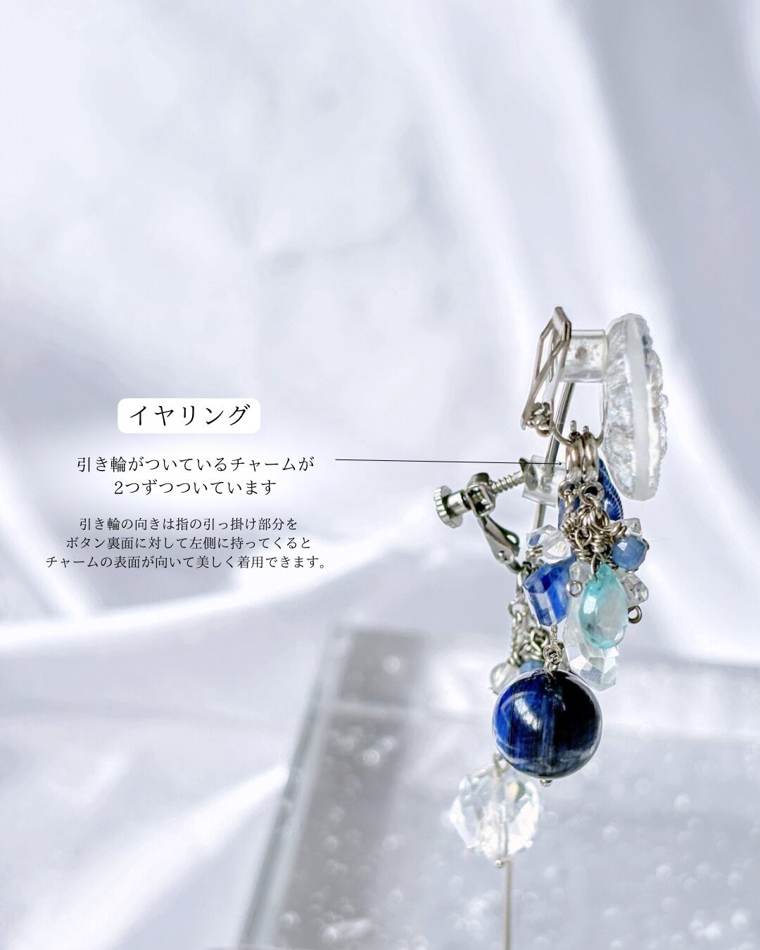 クリップ式イヤリング/ネジバネ式イヤリングでご注文いただいた場合、チャームの位置が若干異なることがございます(8枚目の画像をご参照ください)。