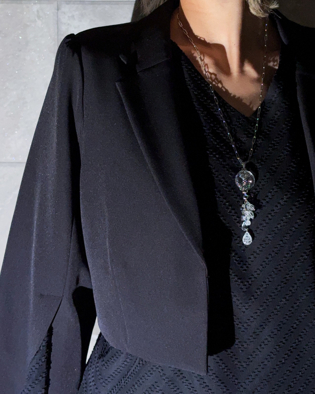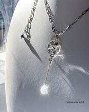 このペンダントの主役である円形のクリスタルは、