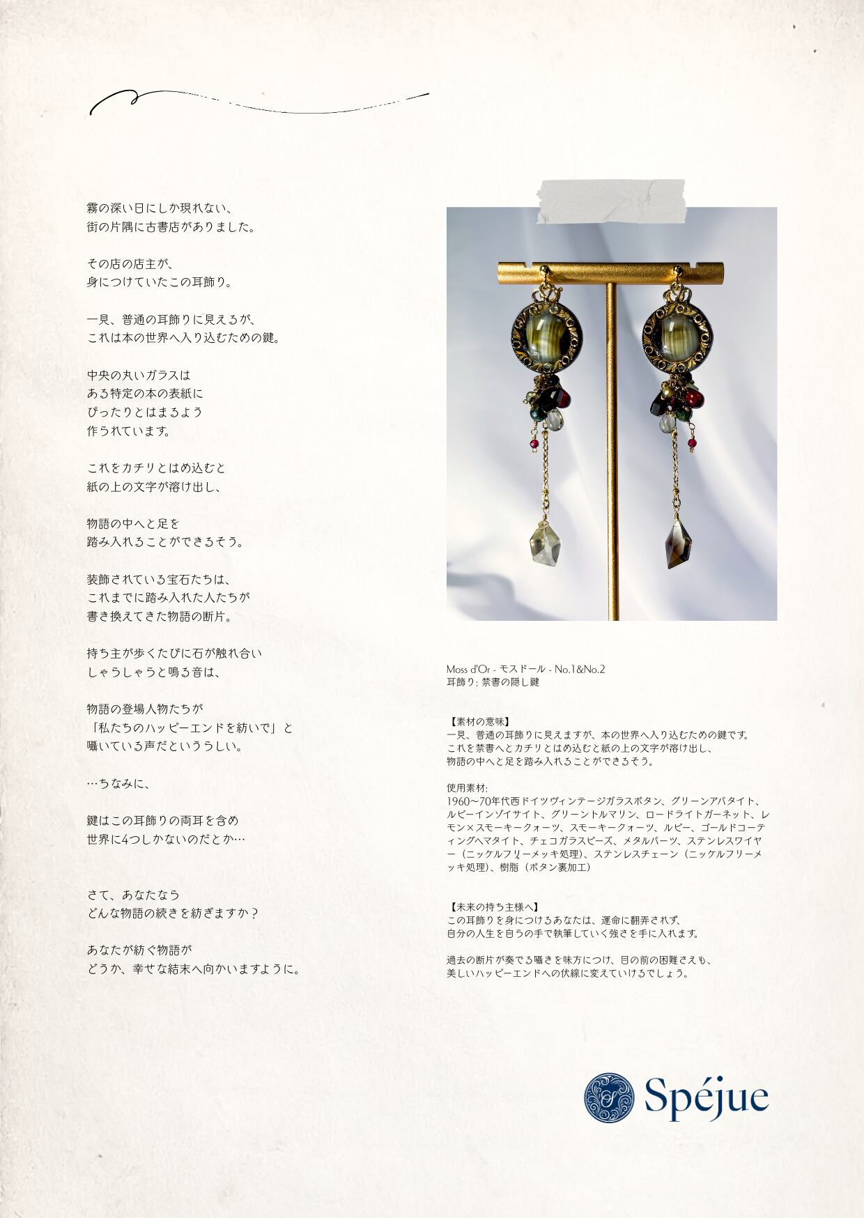 この耳飾りを身につけるあなたは、運命に翻弄されず、自分の人生を自らの手で執筆していく強さを手に入れます。