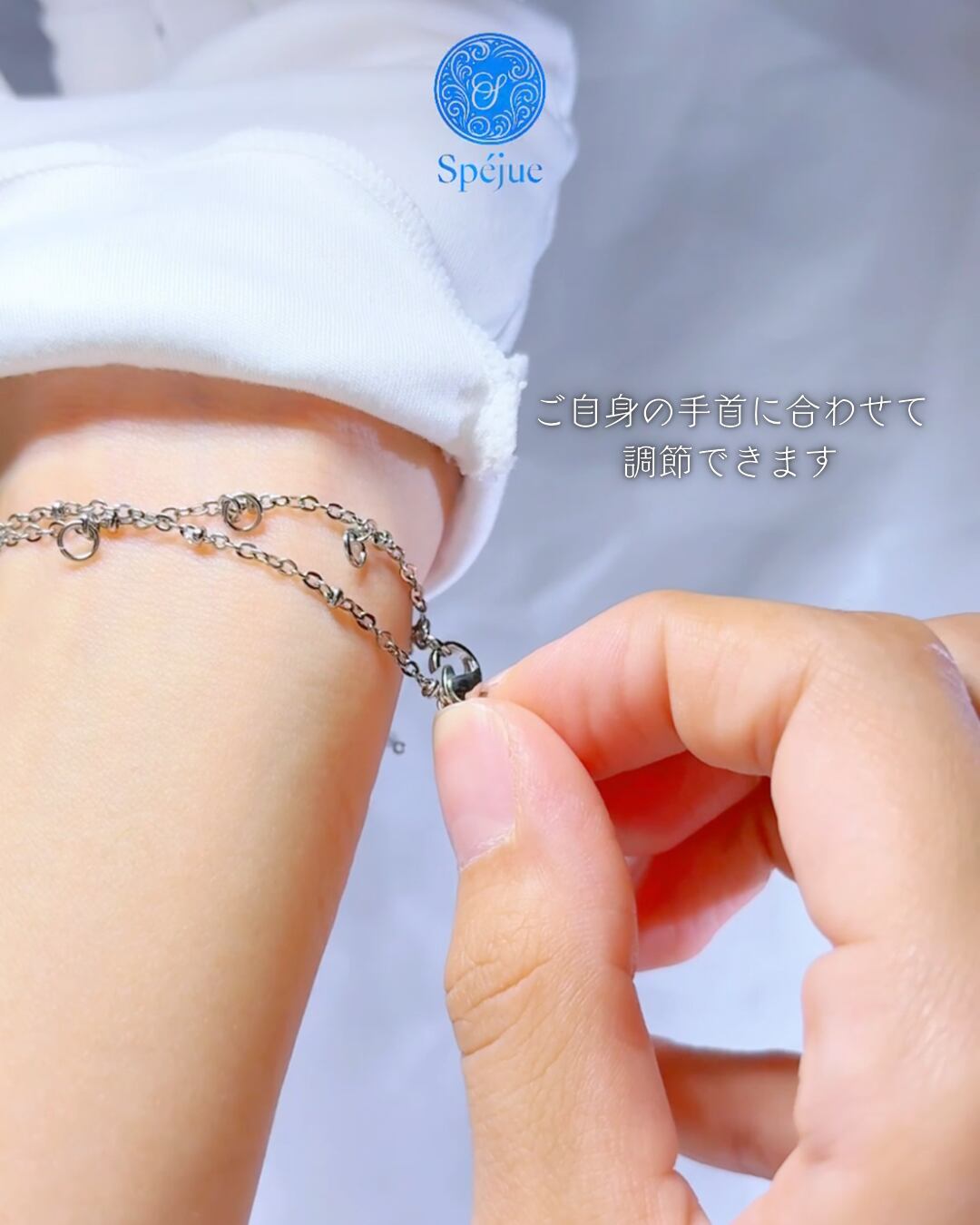 “二つで一つ”のブレスレットを持つ、