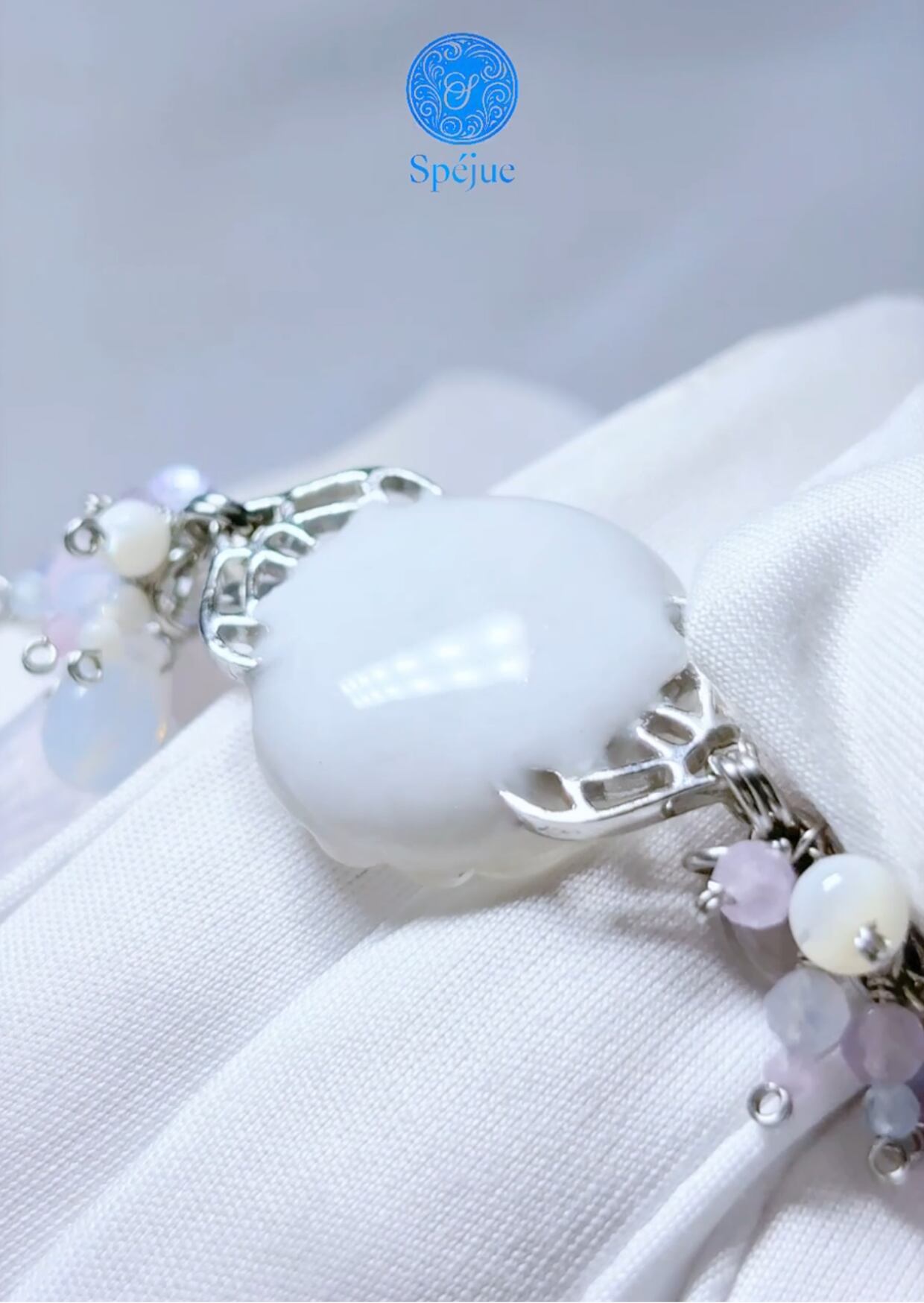 チェコスロヴァキア時代アンティークガラスボタン、スコロライト、アイスクォーツ、レピドライト、タンザナイト、アクアマリン、ラベンダーアメシスト、ローズクォーツ、ブルーレース、マザーオブパール、チェコガラスビーズ、メタルパーツ、ステンレスワイヤー、ステンレスチェーン、樹脂(ボタン裏加工)