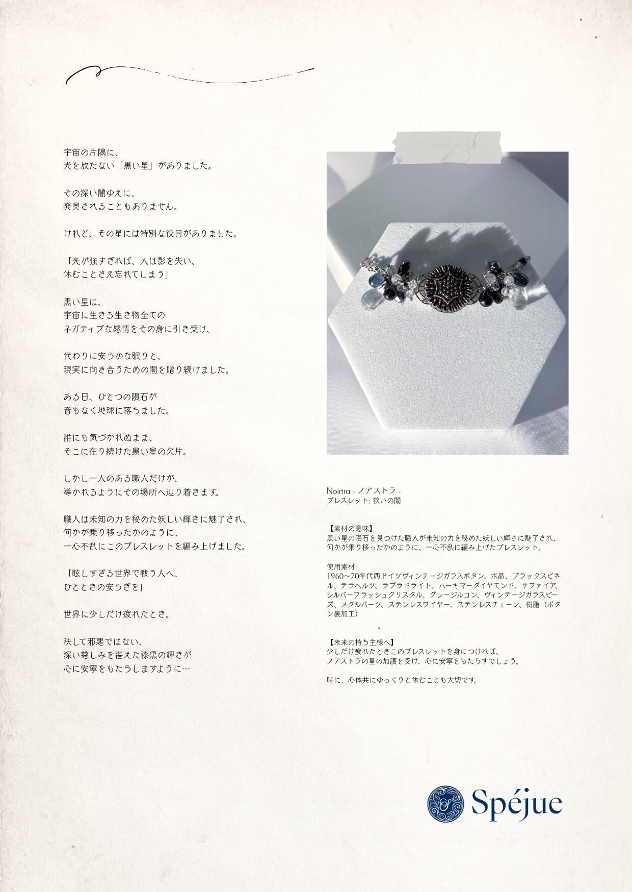 少しだけ疲れたときこのブレスレットを身につければ、ノアストラの星の加護を受け、心に安寧をもたらすでしょう。