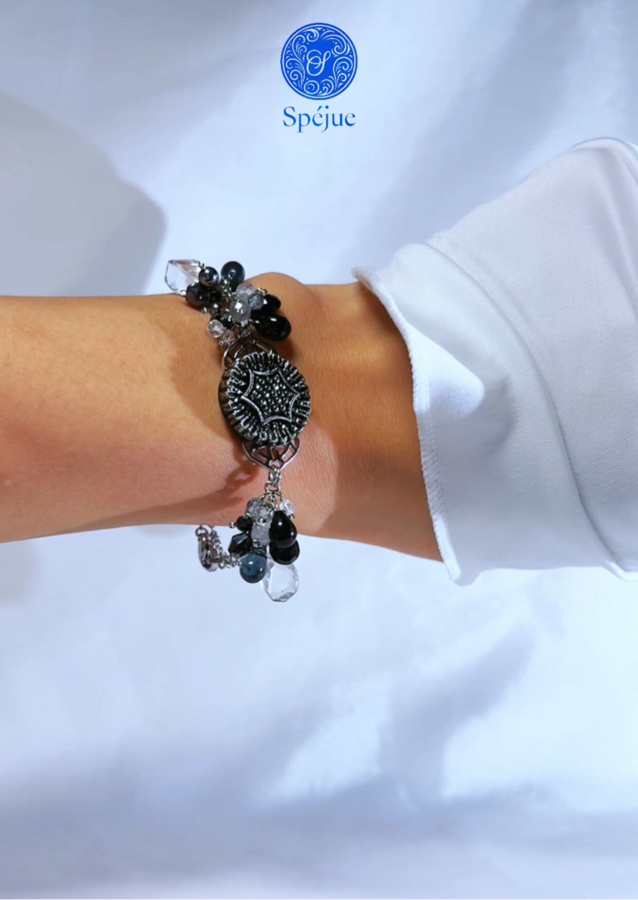 黒い星の隕石を見つけた職人が未知の力を秘めた妖しい輝きに魅了され、何かが乗り移ったかのように、一心不乱に編み上げたブレスレット。
